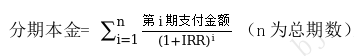 4.如用户享受0分期利息,则近似折算年化利率(单利)为0%。如涉及用户承担分期利息的,近似折算年化利率(单利)不超过18.25%,近似折算年化利率(单利)的具体值可在用户办理时具体查看。分期利息的近似折算年化利率(单利)是根据用户现金流计算出内含报酬率后年化而得。内含报酬率IRR是指使未来现金流入量现值等于未来现金流出量现值的折现率。计算公式如下: